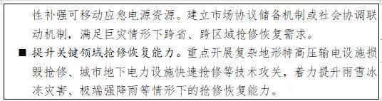 加強(qiáng)電力應(yīng)急協(xié)同處置機(jī)制建設(shè)。建設(shè)電力行業(yè)應(yīng)急指揮系統(tǒng)平臺(tái),推進(jìn)安全監(jiān)管和應(yīng)急處置信息的實(shí)時(shí)采集、監(jiān)測(cè)預(yù)警,全面提升電力突發(fā)事件綜合指揮和協(xié)調(diào)處置能力。提高地方政府大面積停電事件應(yīng)急處置能力,健全京津冀、環(huán)渤海、粵港澳、長(zhǎng)江經(jīng)濟(jì)帶、陸上絲綢之路等跨地區(qū)應(yīng)急救援資源共享及聯(lián)合處置機(jī)制,開(kāi)展跨省和跨區(qū)域的聯(lián)合應(yīng)急演練。推進(jìn)大面積停電事件應(yīng)急能力示范縣(市)建設(shè),提升基層應(yīng)對(duì)能力。繼續(xù)推進(jìn)應(yīng)急產(chǎn)業(yè)發(fā)展,在技術(shù)轉(zhuǎn)化、產(chǎn)品研發(fā)和應(yīng)對(duì)機(jī)制方面加大軍民融合力度,提高聯(lián)合應(yīng)對(duì)重大電力突發(fā)事件能力。