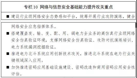 建立健全電力行業(yè)和企業(yè)網(wǎng)絡(luò)安全態(tài)勢(shì)感知、監(jiān)測(cè)預(yù)警、應(yīng)急指揮體系,強(qiáng)化仿真驗(yàn)證能力,推動(dòng)電力北斗系統(tǒng)研發(fā)應(yīng)用創(chuàng)新,推進(jìn)密碼基礎(chǔ)設(shè)施建設(shè),提升基礎(chǔ)設(shè)施的安全可控水平。