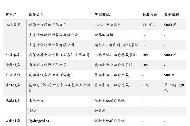 圖表四:車企以及對(duì)應(yīng)的氫能源投資公司