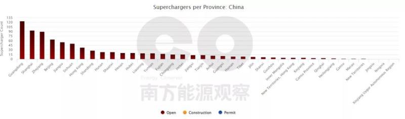 特斯拉超級(jí)充電樁在國(guó)內(nèi)各省分布情況