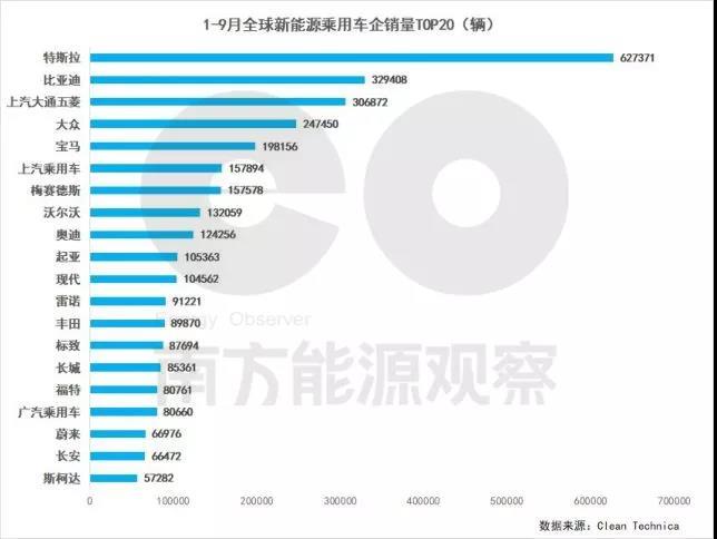 自2003年成立以來(lái),特斯拉長(zhǎng)期處于虧損狀態(tài),隨著電動(dòng)汽車概念的普及和市場(chǎng)的進(jìn)一步擴(kuò)大,從2019年第三季度起,特斯拉電動(dòng)汽車進(jìn)入持續(xù)盈利階段。EV Sales的數(shù)據(jù)顯示,在2021年1月至9月全球新能源乘用車企銷量排名中,特斯拉以62萬(wàn)輛的絕對(duì)優(yōu)勢(shì)繼續(xù)領(lǐng)跑。