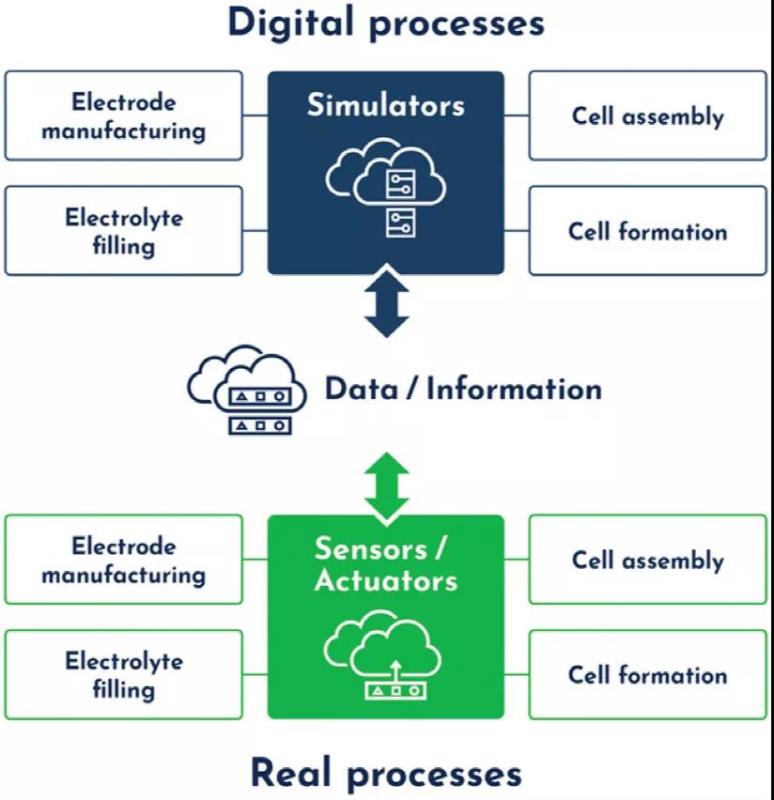 3)關(guān)閉電池設(shè)計(jì)和電池制造開發(fā)之間的循環(huán),其中可以在制造階段之前考慮電池性能和老化方面。因此,一個覆蓋整個電池制造鏈的整體數(shù)字孿生,從材料到電池使用方面,將促進(jìn)可持續(xù)、高效的電池制造方式。