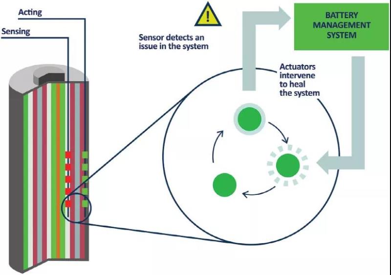 圖8. 傳感、BMS 和自我修復(fù)之間的協(xié)同作用。