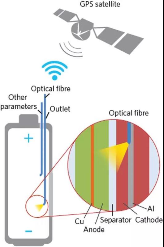 圖6. 除了經(jīng)典的正極和負(fù)極外,未來的電池還帶有連接到傳感器(光纖、電線等)的輸出分析儀。