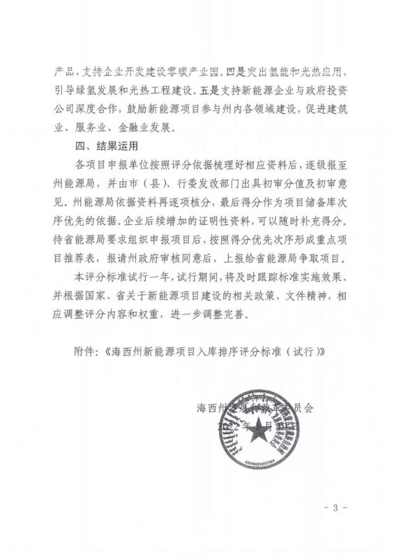中國儲(chǔ)能網(wǎng)訊:1月19日,青海海西州發(fā)改委印發(fā)《新能源項(xiàng)目入庫排序評(píng)分標(biāo)準(zhǔn)》,通過八大類35小項(xiàng)的評(píng)分類型對(duì)新能源項(xiàng)目進(jìn)行評(píng)分排序。