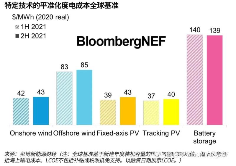 中國儲能網(wǎng)訊:光伏和風(fēng)電行業(yè)曾在長達(dá)10年的時間內(nèi)受益于不間斷的成本下降趨勢,然而這一趨勢在2021年被打破。彭博新能源財(cái)經(jīng)在一份報告中估計(jì),由于供應(yīng)鏈壓力,2021年下半年幾種主要發(fā)電技術(shù)的平準(zhǔn)化度電成本(LCOE)有所上升。