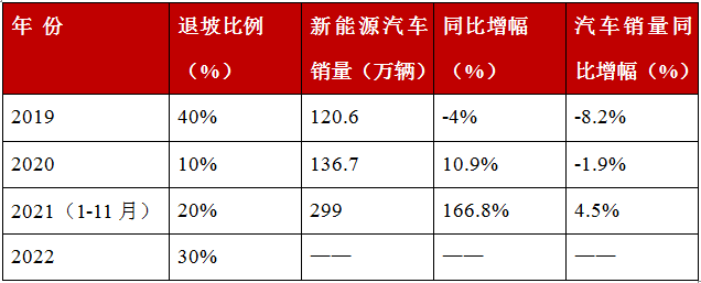 “新能源汽車補貼剛剛退坡之初的2019年,還有的企業(yè)不太適應,多種因素導致當年新能源汽車銷量下滑,但從2020年的10%到2021年的20%,再到2022年的30%,政策調整為循序漸進逐步退坡,企業(yè)也在市場磨礪中逐漸適應并增強了市場競爭力。”楊永年講到,從相關數據可以看出,與整個汽車市場銷售情況相比,新能源汽車銷量在逐步增長,且領先整個汽車市場的幅度也越來越大。
