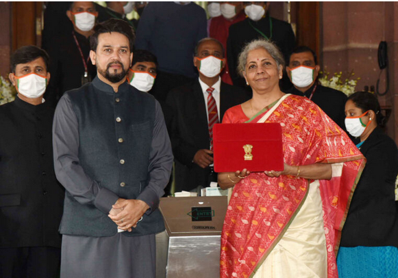 印度財(cái)政部部長(zhǎng)Nirmala Sitharaman手持2021年預(yù)算文件夾
