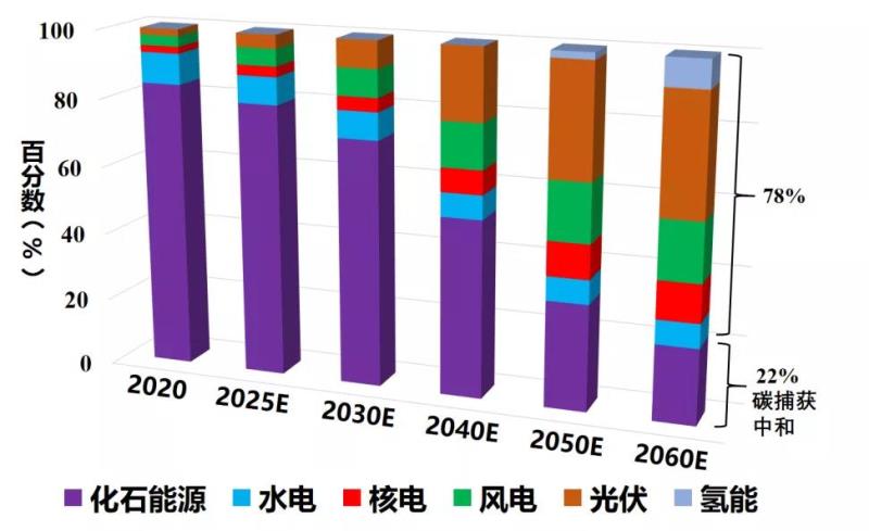 目前能源領(lǐng)域碳排放總量大、占比高,這主要是源于化石能源的大量開(kāi)采和利用,使得二氧化碳等溫室氣體排放量急劇增加。為實(shí)現(xiàn)碳中和,亟待變革能源利用方式和調(diào)整能源結(jié)構(gòu)。一方面,改變化石能源利用方式、提高化石能源轉(zhuǎn)化效率、促進(jìn)化石能源的清潔高效利用,從而達(dá)到節(jié)能減排的目的;另一方面,我國(guó)目前的資源結(jié)構(gòu)為“富煤、少油、缺氣”,亟需改變能源結(jié)構(gòu),提高新能源和清潔能源的占比,大力推進(jìn)低碳能源替代高碳能源、可再生能源替代化石能源??偟膩?lái)說(shuō),發(fā)展新能源,實(shí)現(xiàn)能源轉(zhuǎn)型,降低化石能源消費(fèi),提高能源利用率,節(jié)能減排,構(gòu)建綠色低碳的能源體系,是降低二氧化碳排放、實(shí)現(xiàn)碳中和的重要舉措。