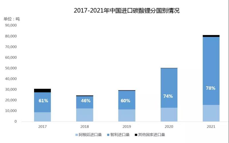 2)海外資源國(guó)有化將提升當(dāng)?shù)刭Y源定價(jià)權(quán),獲得了資源收益的更大話語(yǔ)權(quán)和支配權(quán)。而根據(jù)統(tǒng)計(jì),2021年中國(guó)進(jìn)口鹽湖提鋰中,78%進(jìn)口量來(lái)自智利,那么未來(lái)中國(guó)企業(yè)進(jìn)口鋰產(chǎn)品成本或?qū)⑹艿匠钢狻?