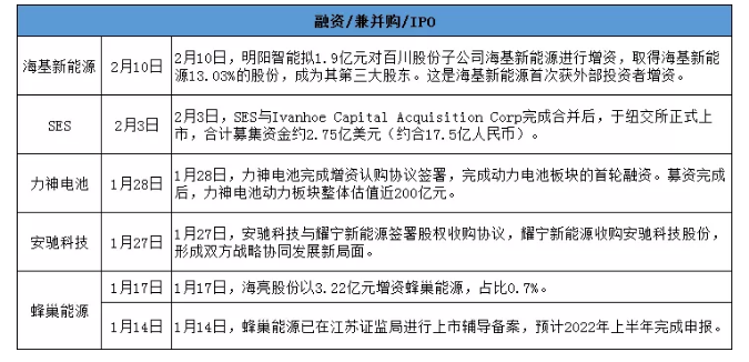其中,SES在紐交所成功上市,蜂巢能源已進(jìn)行上市輔導(dǎo)備案,力神電池、安馳科技、海基新能源等均獲得外部資本青睞。