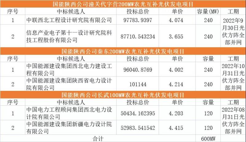 中國儲能網(wǎng)訊:2月11日,國能陜西公司潼關(guān)代字營200MW農(nóng)光互補(bǔ)光伏發(fā)電項目、國能陜西公司秦東200MW農(nóng)光互補(bǔ)光伏發(fā)電項目、國能陜西公司長武100MW農(nóng)光互補(bǔ)光伏發(fā)電項目公示了EPC中標(biāo)候選人。