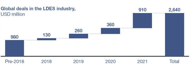 長(zhǎng)時(shí)儲(chǔ)能行業(yè)的全球交易(百萬(wàn)美元)