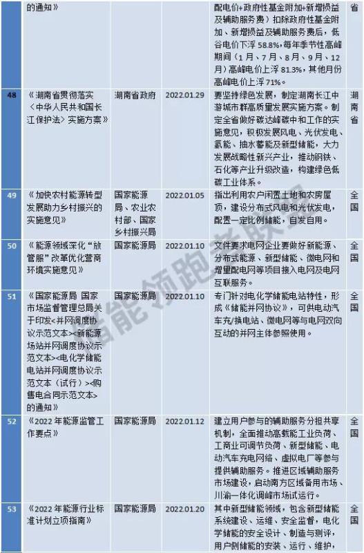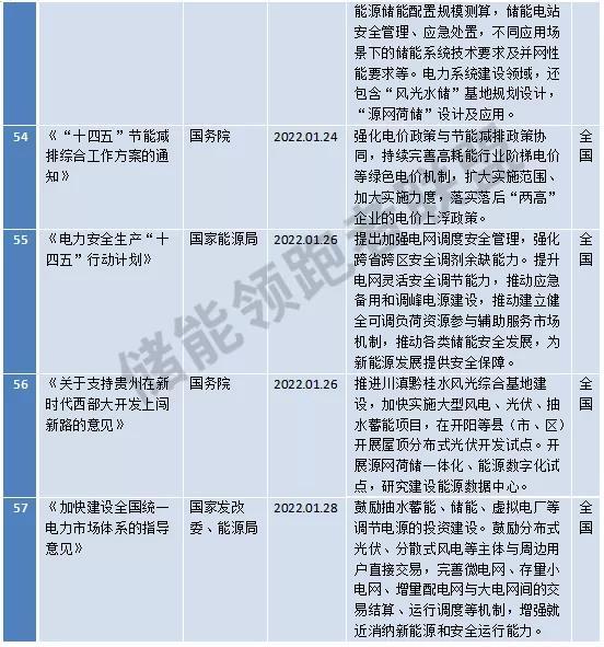 中國儲能網(wǎng)訊:據(jù)EESA不完全統(tǒng)計,2022年1月我國共頒布了57項儲能相關(guān)政策,其中國家政策9項,地方政策48項。