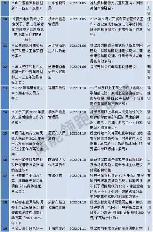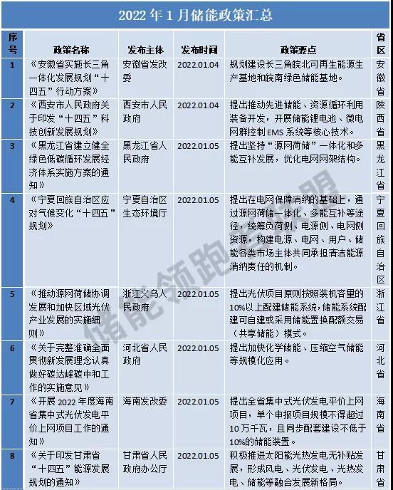 2022年1月27日,天津發(fā)改委發(fā)布《天津市可再生能源發(fā)展“十四五”規(guī)劃》,提出推動儲能技術(shù)應(yīng)用,推廣“可再生能源+儲能”模式,新增集中式風(fēng)電、光伏發(fā)電項目原則上應(yīng)配套建設(shè)一定比例儲能設(shè)施,力爭儲能裝機(jī)規(guī)模達(dá)到50萬千瓦。
