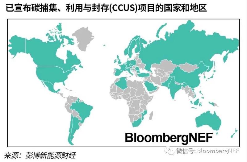 2021年,彭博新能源財(cái)經(jīng)追蹤到了27個(gè)國家和地區(qū)宣布了100個(gè)新項(xiàng)目。這些項(xiàng)目將用于電力、制氫和天然氣加工等行業(yè)的脫碳。