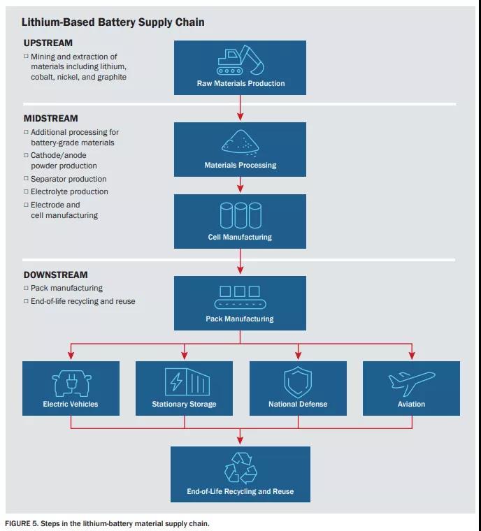 2021年6月,DOE根據(jù)行政命令14017(Executive Order 14017)“America’s Supply Chains”,發(fā)布了一份為期100天的大容量電池供應(yīng)鏈評(píng)估報(bào)告。建議建立關(guān)鍵材料的國(guó)內(nèi)生產(chǎn)和加工能力,以支持完全國(guó)內(nèi)的端到端電池供應(yīng)鏈。拜登總統(tǒng)的兩黨基礎(chǔ)設(shè)施法案撥款近70億美元,用于加強(qiáng)美國(guó)電池供應(yīng)鏈,包括在不進(jìn)行新開采或采礦的情況下生產(chǎn)和回收關(guān)鍵礦物,以及為國(guó)內(nèi)制造業(yè)采購(gòu)材料。