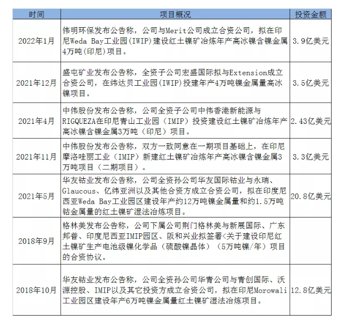 高工鋰電注意,目前已有包括中偉股份、格林美、華友鈷業(yè)、盛屯礦業(yè)等企業(yè)宣布在印尼建設(shè)鎳金屬冶煉項目,預(yù)計后期還將有更多企業(yè)加入這場鎳資源爭奪戰(zhàn)。