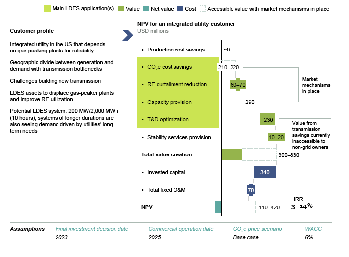 長時儲能創(chuàng)造的價值可以使客戶廣泛受益。以下幾個客戶業(yè)務(wù)案例說明了一些應(yīng)用程序在不久的將來創(chuàng)造價值的潛力。而在未來面臨輸電瓶頸的公用事業(yè)公司將從采購和部署長時儲能中受益,但在貨幣化方面面臨不確定性。