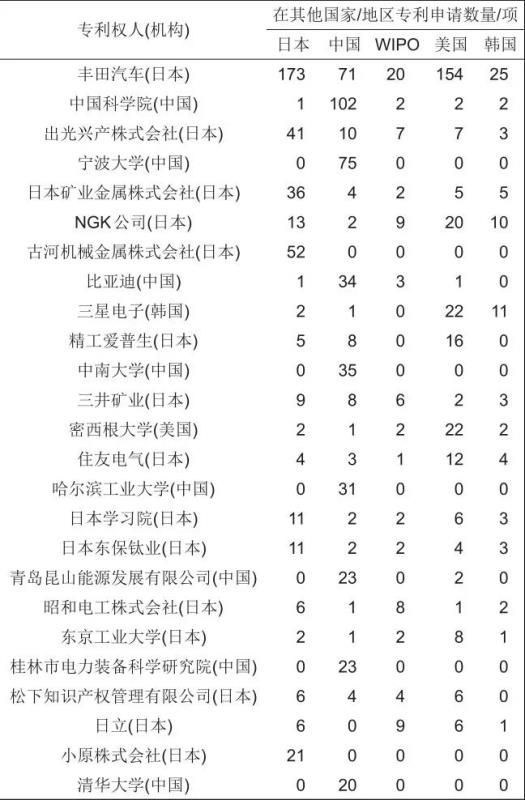 表2 全固態(tài)鋰電池技術(shù)主題布局及專利申請(qǐng)情況