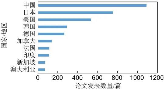 圖4 全球全固態(tài)鋰電池技術(shù)論文發(fā)表量前十的國(guó)家/地區(qū)