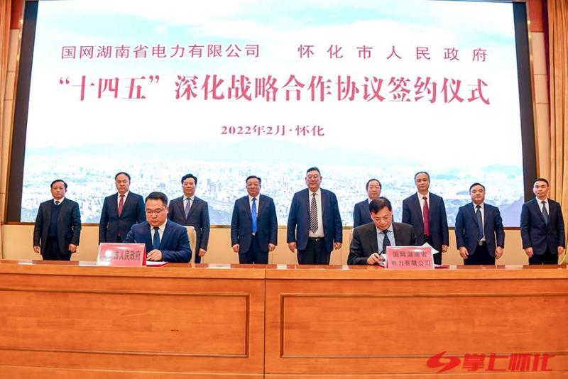 中國儲能網(wǎng)訊:飛雪迎春到,歲寒情更濃。2月22日下午,懷化市政府與國網(wǎng)湖南省電力有限公司簽署“十四五”深化戰(zhàn)略合作協(xié)議。市委書記雷紹業(yè),國網(wǎng)湖南省電力有限公司董事長、黨委書記孟慶強(qiáng)共同見證簽約,市委副書記、市長黎春秋主持,國網(wǎng)湖南省電力有限公司總經(jīng)理、黨委副書記明煦,市領(lǐng)導(dǎo)李衛(wèi)林、鄒興旺出席簽約儀式。