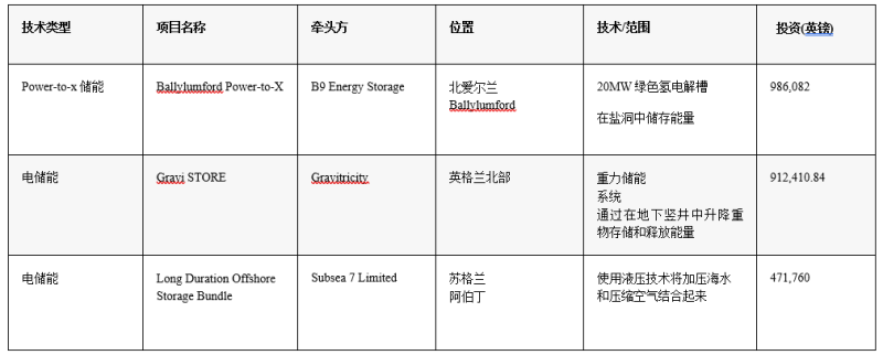 英國(guó)商業(yè)、能源和工業(yè)戰(zhàn)略部(BEIS)于2021年6月通過國(guó)家凈零創(chuàng)新投資組合(NZIP)提供了總額為6800萬英鎊的競(jìng)爭(zhēng)性融資。共有24個(gè)長(zhǎng)時(shí)儲(chǔ)能示范項(xiàng)目獲得資助。