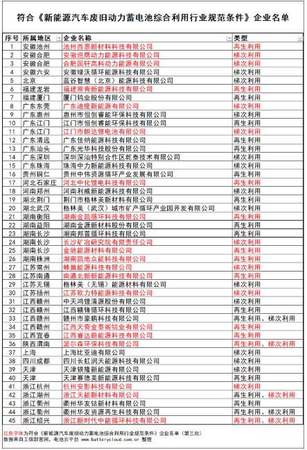 2018年9月5日、2020年12月16日、2021年12月16日,工信部先后發(fā)布了《新能源汽車廢舊動(dòng)力蓄電池綜合利用行業(yè)規(guī)范條件》企業(yè)名單公告,第一批、第二批、第三批“正規(guī)軍”相繼誕生。