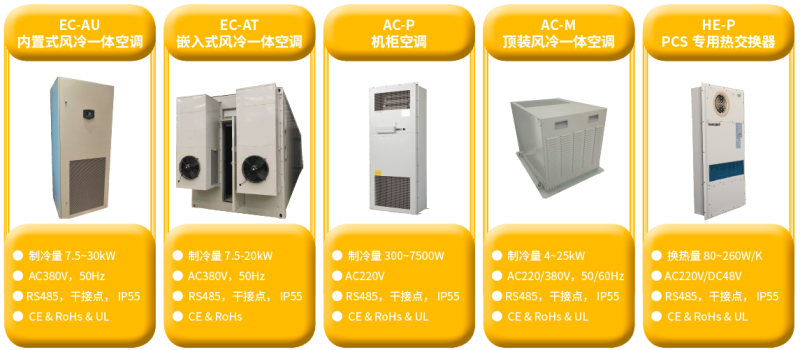 2017年起,黑盾股份開始為儲能系統(tǒng)提供風(fēng)冷溫濕度解決方案,針對儲能電池和PCS的發(fā)熱特點和運行要求,先后研發(fā)了儲能集裝箱專用的一體式風(fēng)冷空調(diào)和熱交換器,產(chǎn)品根據(jù)不同儲能集裝箱的設(shè)計要求,分為內(nèi)置一體式、嵌入一體式、頂置式等不同系列產(chǎn)品,受到客戶廣泛認(rèn)可。