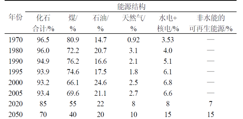 相關(guān)統(tǒng)計(jì)數(shù)據(jù)顯示,20世紀(jì)70年代以來,化石能源在我國一次能源構(gòu)成中的占比呈逐年下降趨勢,但仍以煤炭為主。
