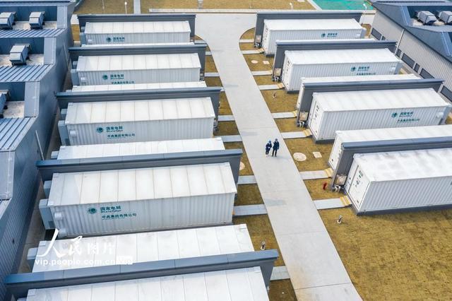 位于南京市江北新區(qū)新科十二路的江北儲(chǔ)能電站占地51.26畝,最大充放電功率110.88兆瓦,存儲(chǔ)容量193.6兆瓦時(shí),可儲(chǔ)存約19萬(wàn)度電。儲(chǔ)能電站在用電低谷時(shí)“插在”電網(wǎng)上充電,在用電高峰時(shí)釋放電力,有效填補(bǔ)電力缺口。杜懿攝(人民圖片網(wǎng))