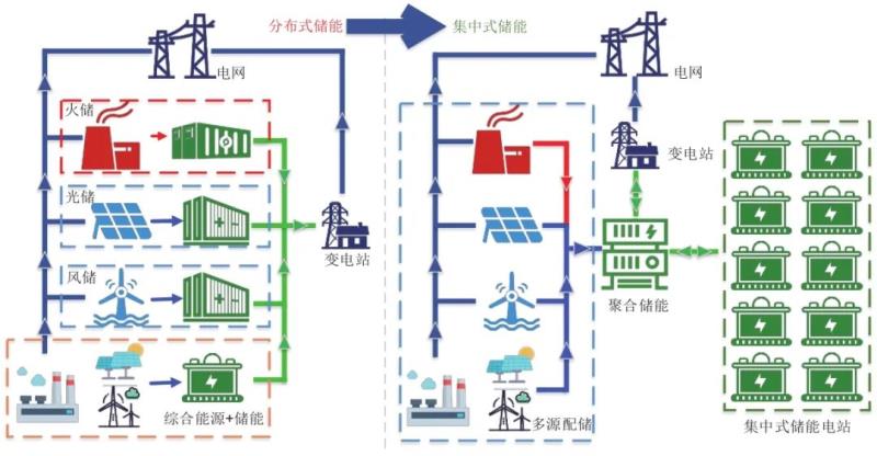 圖1 分布式儲(chǔ)能和集中式儲(chǔ)能對(duì)比
