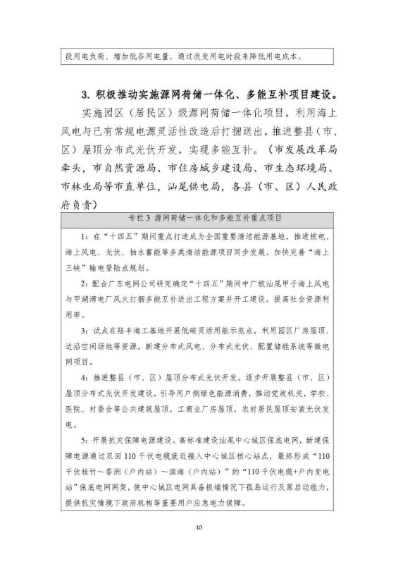 積極推動實施源網荷儲一體化、多能互補項目建設。實施園區(qū)(居民區(qū))級源網荷儲一體化項目,利用海上風電與已有常規(guī)電源靈活性改造后打捆送出,推進整縣(市、區(qū))屋頂分布式光伏開發(fā),實現多能互補。