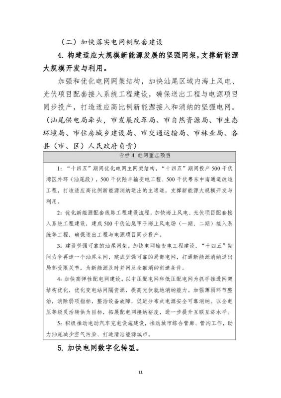 中國儲能網訊:3月2日,汕尾市發(fā)展和改革局發(fā)布關于公開征求《汕尾市新型電力系統示范區(qū)合作共建行動方案》(征求意見稿)意見和建議的函,提出積極推動實施源網荷儲一體化、多能互補項目建設。