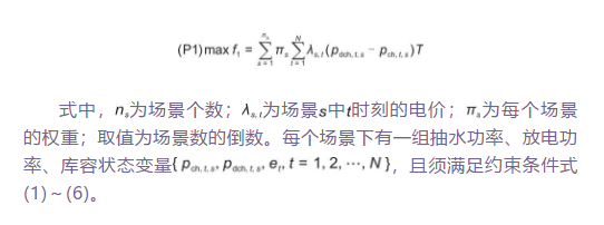 本工作研究了抽蓄電站參與電能量市場與輔助服務(wù)市場的優(yōu)化決策問題,考慮了電能價(jià)格的不確定性,基于場景建模方法,建立抽蓄電站參與電能量市場并提供備用的優(yōu)化決策模型,進(jìn)一步建立了其提供多種備用服務(wù)的優(yōu)化決策模型。抽蓄電站提供不同時(shí)間尺度備用時(shí),其功率容量之間互不影響,但各類備用的庫存容量相互耦合和制約。