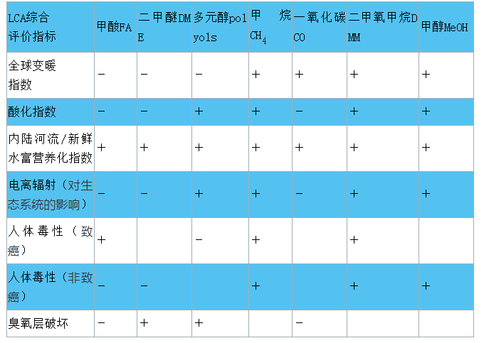 二氧化碳化學(xué)利用是指將捕獲的二氧化碳當(dāng)成化工產(chǎn)品原材料,應(yīng)用領(lǐng)域包括:制作碳酸飲料,二氧化碳礦化,制成碳酸鹽及聚合材料,合成甲醇、尿素及二甲醚,生產(chǎn)肥料、液體燃料、聚碳酸酯及聚氨酯聚合物,制造干冰及滅火器等。同傳統(tǒng)方式相比,二氧化碳替代原料生產(chǎn)造成的生態(tài)環(huán)境影響取決于具體產(chǎn)品類型。綜合來看,如表1所示,利用二氧化碳生產(chǎn)甲酸、二甲醚在氣候變化、酸化、電離輻射、人體毒性等方面都具有改善效果,而生產(chǎn)二甲氧甲烷、甲醇則加重了各項生態(tài)環(huán)境指標(biāo)的負面影響。