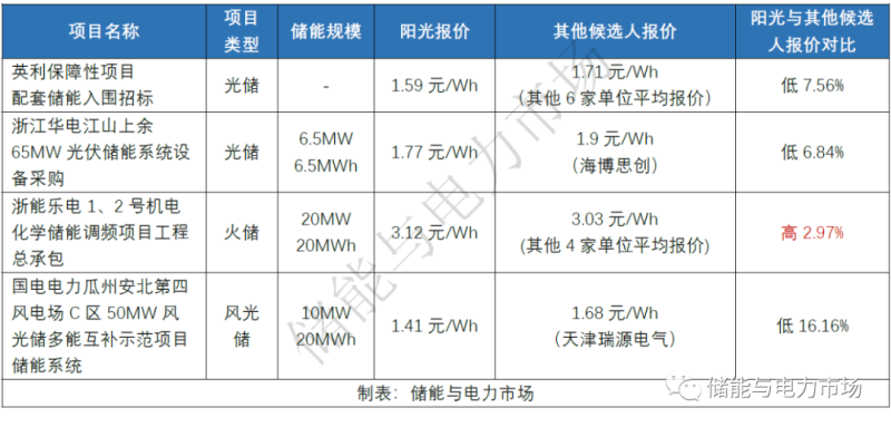 2022年至今陽(yáng)光電源儲(chǔ)能中標(biāo)項(xiàng)目及價(jià)格