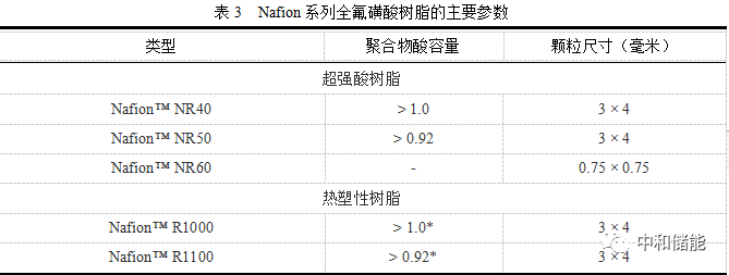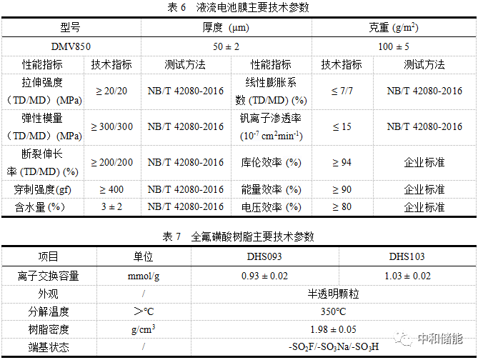同時,未來氫能所生產(chǎn)的液流電池膜是一種采用全氟磺酸樹脂與增強材料復(fù)合的復(fù)合膜DMV850,具有陽離子單向通過特性、厚度薄、強度大、溶脹度低、尺寸穩(wěn)定性高、耐久性好等特點,可廣泛應(yīng)用于全釩液流電池、鐵鉻液流電池等領(lǐng)域。其主要技術(shù)參數(shù)指標如下表6。并且未來氫能也實現(xiàn)了作為全氟磺酸質(zhì)子交換膜生產(chǎn)的重要中間原料全氟磺酸樹脂的生產(chǎn),主要型號有DHS093和DHS103,其主要技術(shù)參數(shù)指標如下表7。但就目前而言,其在國內(nèi)的市場份額并不大,競爭力較戈爾差距較大,但具有一定的價格優(yōu)勢,約為2000元/平方米。