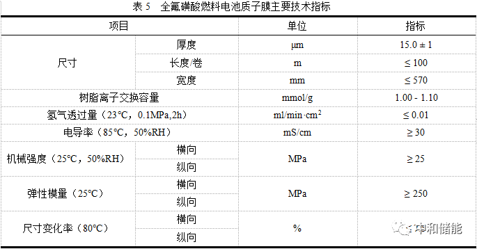東岳未來氫能材料股份有限公司生產(chǎn)的全氟磺酸系列產(chǎn)品主要包括全氟磺酸燃料電池質(zhì)子膜、液流電池膜和水電解制氫膜。東岳未來氫能生產(chǎn)的全氟磺酸燃料電池質(zhì)子膜具有優(yōu)良的耐熱性能、力學性能、電化學性能以及化學穩(wěn)定性能,可在強酸、強堿、強氧化劑介質(zhì)等苛刻條件下使用,主要技術(shù)指標如下表。