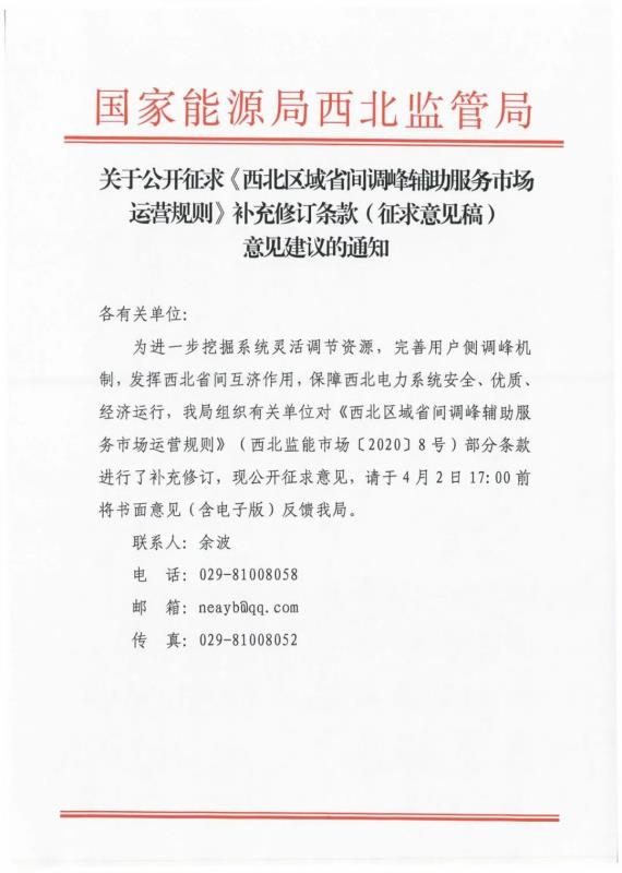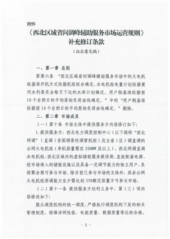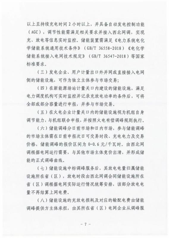 中國(guó)儲(chǔ)能網(wǎng)訊:3月2日,國(guó)家能源局西北監(jiān)管辦發(fā)布關(guān)于公開(kāi)征求《西北區(qū)域省間調(diào)峰輔助服務(wù)市場(chǎng)運(yùn)營(yíng)規(guī)則》補(bǔ)充修訂條款(征求意見(jiàn)稿)意見(jiàn)建議的通知。規(guī)則中提出儲(chǔ)能調(diào)峰的報(bào)價(jià)區(qū)間為0-0.6元/千瓦時(shí)。由西北網(wǎng)調(diào)根據(jù)電網(wǎng)運(yùn)行需要,與其他市場(chǎng)主體競(jìng)價(jià)出清,并形成儲(chǔ)能的正式調(diào)峰曲線。