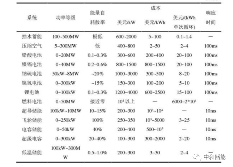 表1 不同儲(chǔ)能方式的主要性能對(duì)比[1]