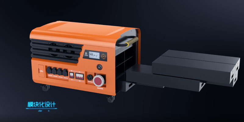 千乘動(dòng)力整機(jī)尺寸為900mm*600mm*586mm。機(jī)身和電芯模塊進(jìn)行分離式設(shè)計(jì),可以支持4組或5組靈活配置使用。分為1個(gè)機(jī)身,6個(gè)高能量密度電芯標(biāo)準(zhǔn)模塊,內(nèi)置有電子鎖、工作狀態(tài)下不可分離,保證設(shè)備運(yùn)行狀態(tài)下的安全。電芯模塊插拔方便,單個(gè)模塊重25kg,機(jī)身種30kg,兩個(gè)人可輕松搬運(yùn),解決了燃油發(fā)電機(jī)和常規(guī)移動(dòng)大儲(chǔ)能搬運(yùn)不便的問題。