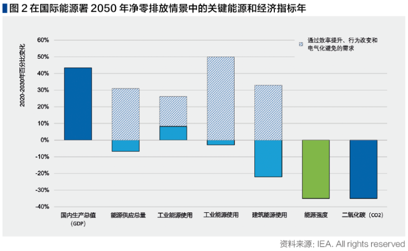 圖片在全球范圍內,為了在本世紀中葉達到凈零排放,需要在未來十年內將能源強度改善率提高一倍