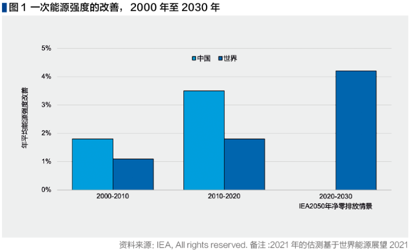改善能源強度將為助力中國實現(xiàn)在2030年前二氧化碳排放達到峰值,并在2060年前實現(xiàn)碳中和的目標方面發(fā)揮關鍵作用