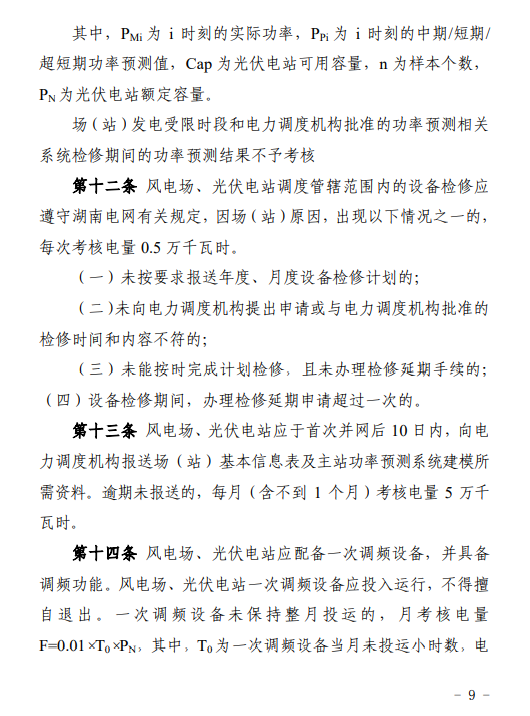 本細(xì)則適用魚并入湖南電網(wǎng)、納入市(州)級及以上電力調(diào)度機(jī)構(gòu)調(diào)度管理的風(fēng)電場、光伏電站。新建和擴(kuò)建風(fēng)電場、光伏電站自第一臺機(jī)組并入電網(wǎng)之時起納入本細(xì)則管理。