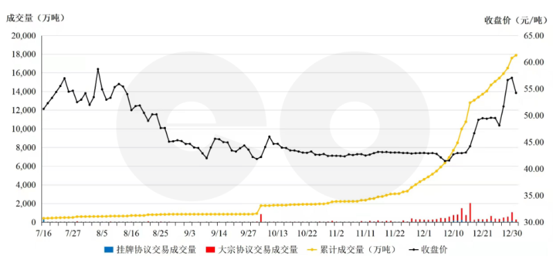 據(jù)悉,由于履約時(shí)間緊,也出現(xiàn)了一些缺口較大的電廠在交易系統(tǒng)中難以購(gòu)買(mǎi)足額配額的情況。此外,進(jìn)入12月,碳價(jià)持續(xù)走高,部分本就虧損的煤電廠更加缺乏履約動(dòng)力。