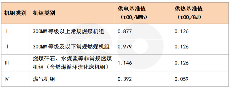 表1:國(guó)家生態(tài)環(huán)境部劃定的碳排放基準(zhǔn)