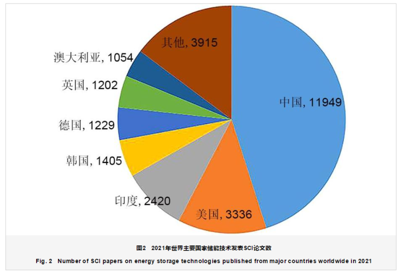 2021年,中國(guó)儲(chǔ)能技術(shù)在基礎(chǔ)研究、關(guān)鍵技術(shù)和集成示范方面均取得了重要進(jìn)展。這一年,中國(guó)機(jī)構(gòu)和學(xué)者發(fā)表SCI論文11949篇,居世界第一位,且遙遙領(lǐng)先于第二位美國(guó),中國(guó)已經(jīng)成為全球儲(chǔ)能技術(shù)基礎(chǔ)研究最活躍的國(guó)家。在關(guān)鍵技術(shù)和集成示范方面,各主要儲(chǔ)能技術(shù)也均取得重要進(jìn)展,中國(guó)已成為世界儲(chǔ)能技術(shù)研發(fā)和示范的主要核心國(guó)家之一。