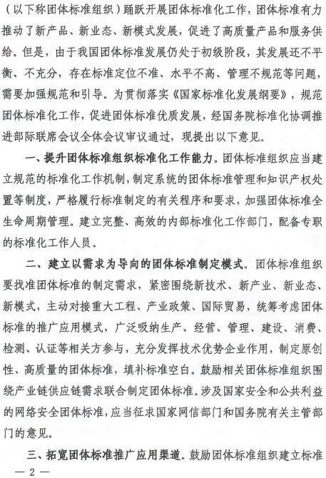 國(guó)家標(biāo)準(zhǔn)化管理委員會(huì)等十七部門聯(lián)合印發(fā)《關(guān)于促進(jìn)團(tuán)體標(biāo)準(zhǔn)規(guī)范優(yōu)質(zhì)發(fā)展的意見》