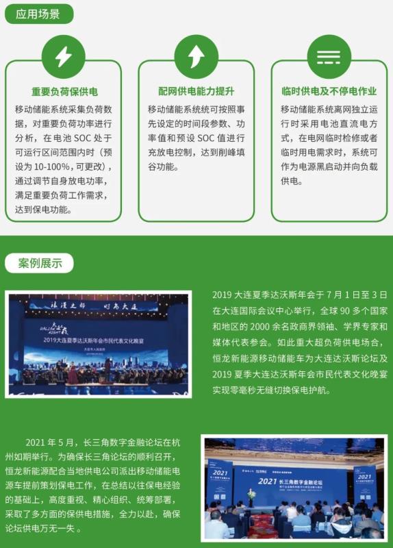 冬奧賽事、生活保障用電要求非常高,恒龍新能源提供的多臺(tái)移動(dòng)儲(chǔ)能保電設(shè)備作為冬奧會(huì)供電保障工作的利器,不僅具有低噪音、零污染、電能優(yōu)質(zhì)等優(yōu)勢(shì),還可實(shí)現(xiàn)離并網(wǎng)毫秒級(jí)切換,能有效支持應(yīng)急備電供電和配網(wǎng)臺(tái)區(qū)應(yīng)急供電。